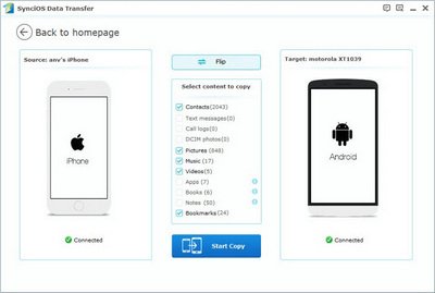 The One-Click Data Transfer tool works for both Android & iOS devices. Follow these quick steps to transfer your data safely and easily, including contacts, messages, call history, photos, videos, songs, bookmarks and so on.