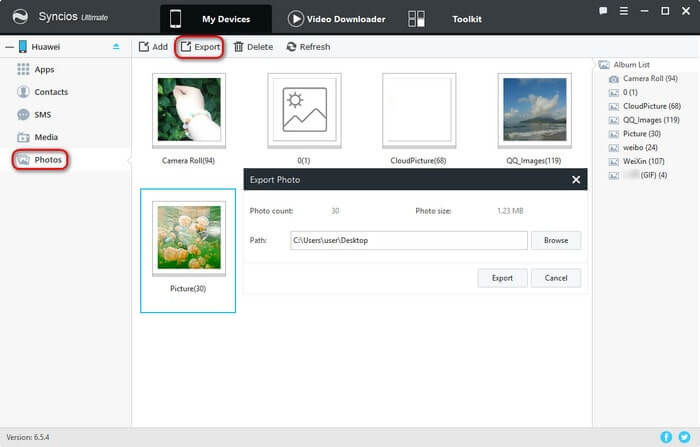 If you need to transfer photos from Huawei Mate 20(Pro)to computer more easily and quickly, there is an Ultimate version for you to get more great features like one-click backup and restore. You should upgrade to Syncios Ultimate version first.