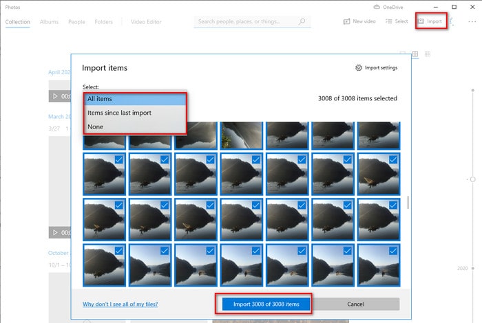 Step 4 You can choose all by All items option, or selectively choose by ticking off the box. After that, tap Import [Number] of [All] items to proceed. If completed, a small window noting 'All Done' will pop up in the lower right corner.