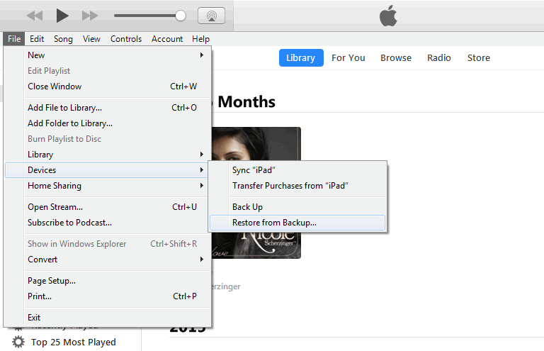 Step 4 :Select the most recent backup you just made from the restore menu in iTunes, then click βContinueβ.